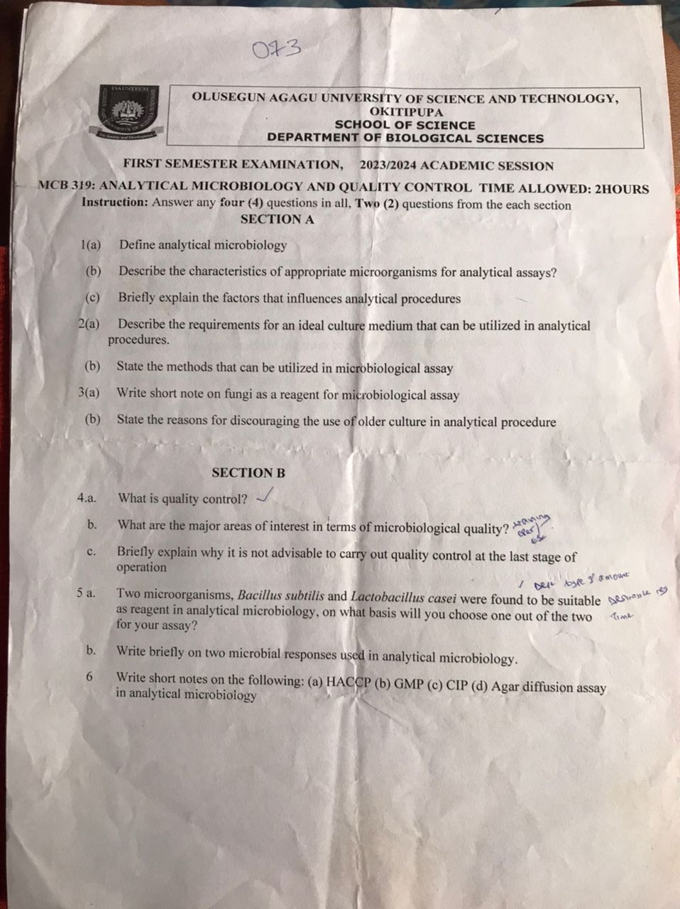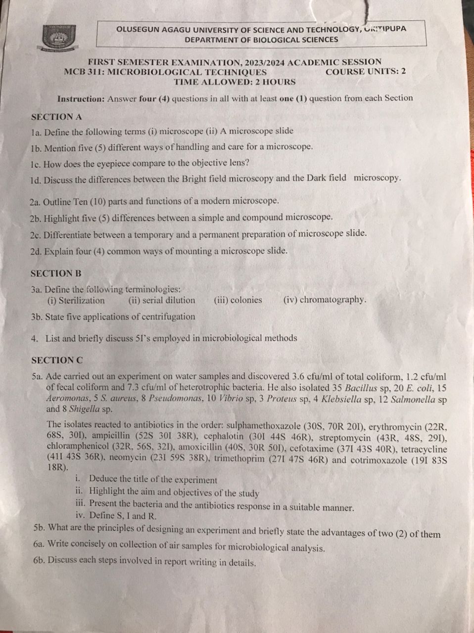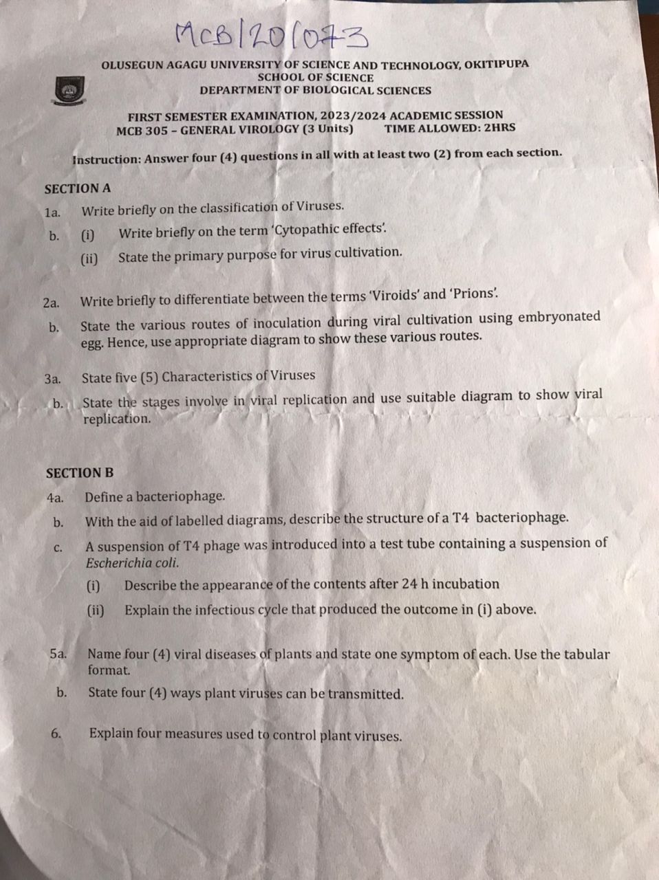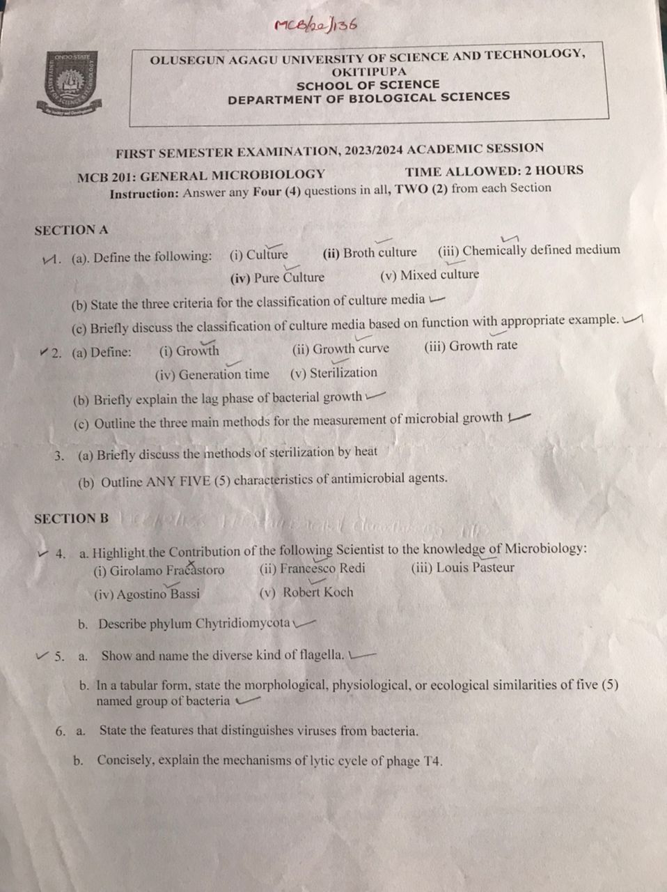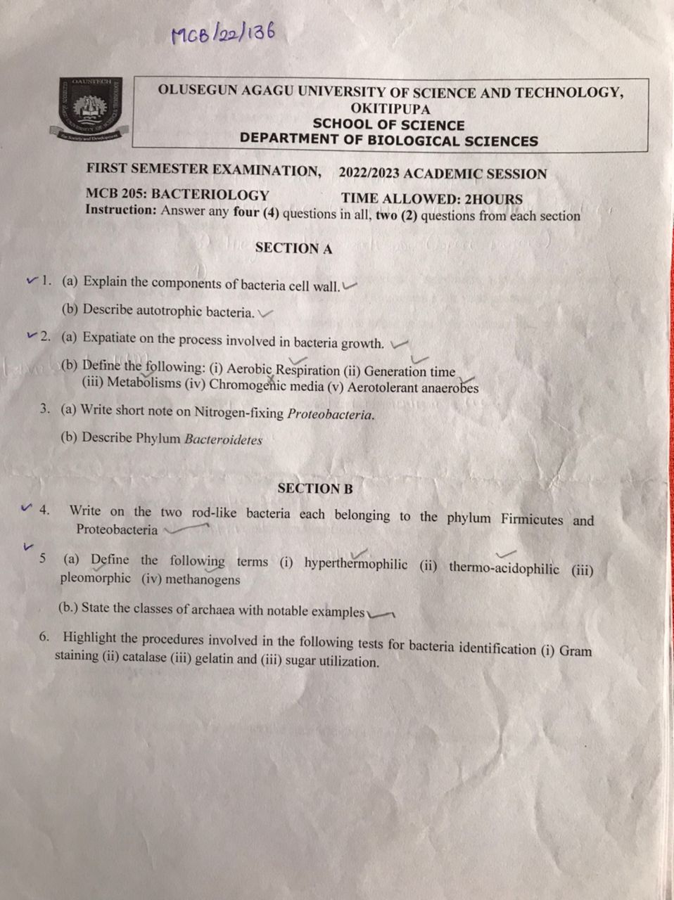 PAST QUESTIONS FOR 100L COURSES AND 200 COURSES CONTAINS 26 QUESTIONS
